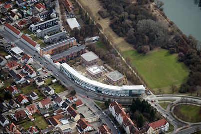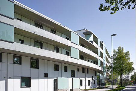 Die Schwinge bietet im Quartier an der Regensburger Straße Wohnraum für 38 Familien bzw. Alleinerziehende. Die Nähe zur Innenstadt sowie die unmittelbar südlich angrenzenden Donauauen zeichnen das Projekt aus. Die klare, straßenbegleitende Gebäudegeometrie mit 160 m Länge – davon 120 m in der Kurve bildet einen markanten, städtischen Abschluss des Viertels und ist gleichzeitig ein geschlossener, „gebauter“ Schallschutz mit höchster Wohnqualität und Ruhe im verkehrsfreien Innenhof.